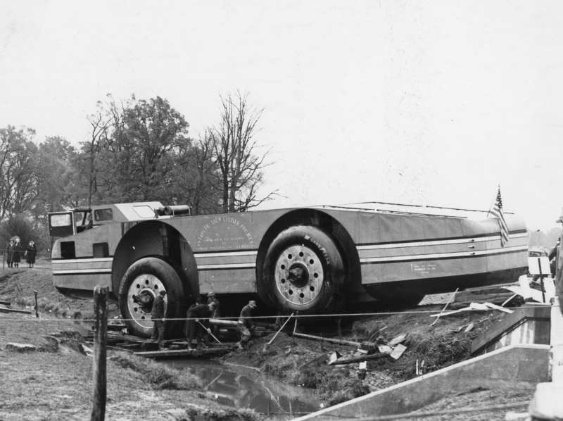 装有8号赛车,康明斯模型U-powered印第安纳卡车从纽约出发,纽约(美国),抵达洛杉矶,加州(美国),运行时间125小时,记录运行时间只有97 -这两个新记录。